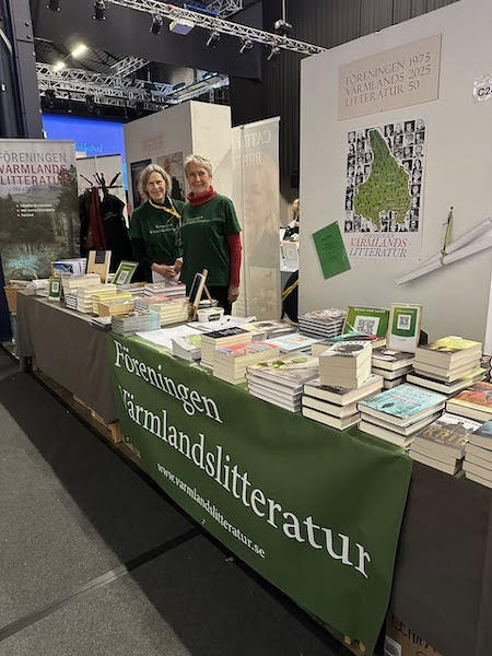 Vid vårt långa bokbord. FVL:s vice ordförande Solveig Nilsson Lindberg och ordförande Birgitta Holm. Ännu en lyckad värmländsk bokfestival med ett myller av författare, utställare, besökare och bokbord gick av stapeln den 7–8 november. För Föreningen Värmlandslitteratur var det bråda dagar. Först med att göra i ordning bokbord och skärmar dagen innan festivalen och sedan bemanna vårt långa bokbord och assistera Region Värmland med signering av böcker för att slutligen plocka ner allt. På Värmlandsscenen medverkade FVL med en uppskattad presentation av den digitala värmlandskartan och vår ordförande Birgitta Holms samtal med debutanten Johanna Solberger om hennes fina bok Den största lögnen. Ett stort tack till alla styrelsemedlemmar och FVL-medlemmar som bemannade vårt bokbord och som ilade fram och tillbaka till signeringsborden med signeringsböcker. Ett alldeles särskilt stort tack till Svetlana Vall som ännu en bokfestival svarade för beställning och iordningställande av alla böcker till bokborden, denna gång med hjälp av döttrarna Alisa Lundh och Sallie Lundh, till Akademibokhandeln som levererade och till Lars Lingsell som hämtade och återlämnade dem. Allt som allt ett jättelikt arbete! Ett stort tack också till Region Värmland och mässgeneralen Ricky Andreis som nu i tio års tid organiserat denna stora värmländska bokfest! Årets Värmlandsförfattare -Fredagen den 7 november prisades Årets Värmlandsförfattare och fyra litteraturstipendiater av Region Värmland på Nöjesfabrikens Stora scen av Kultur- och bildningsnämndens ordförande Sofia Magnusson och Oda Larsson, enhetschef för kulturavdelningen som höll i prisceremonin.